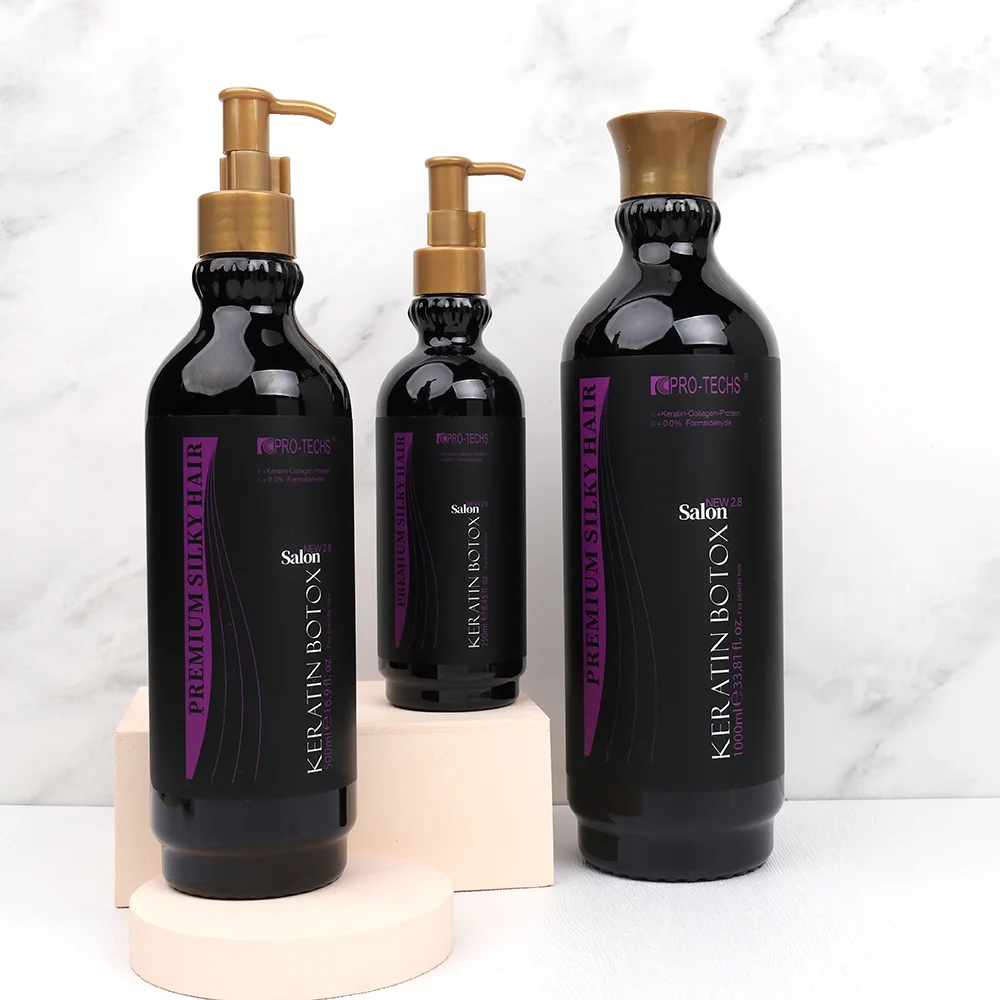 The reparative and smoothing effects of Keratin Botox 2.8 typically last for 3 to 4 months. To maximize this duration, it is crucial to use the PRO-TECHS Sulfate-Free Aftercare collection. These maintenance products are specifically pH-balanced to avoid opening the hair cuticle, ensuring the intensive moisture and protein deposits from the 2.8 treatment remain locked within the hair shaft for a long-lasting, salon-fresh finish.