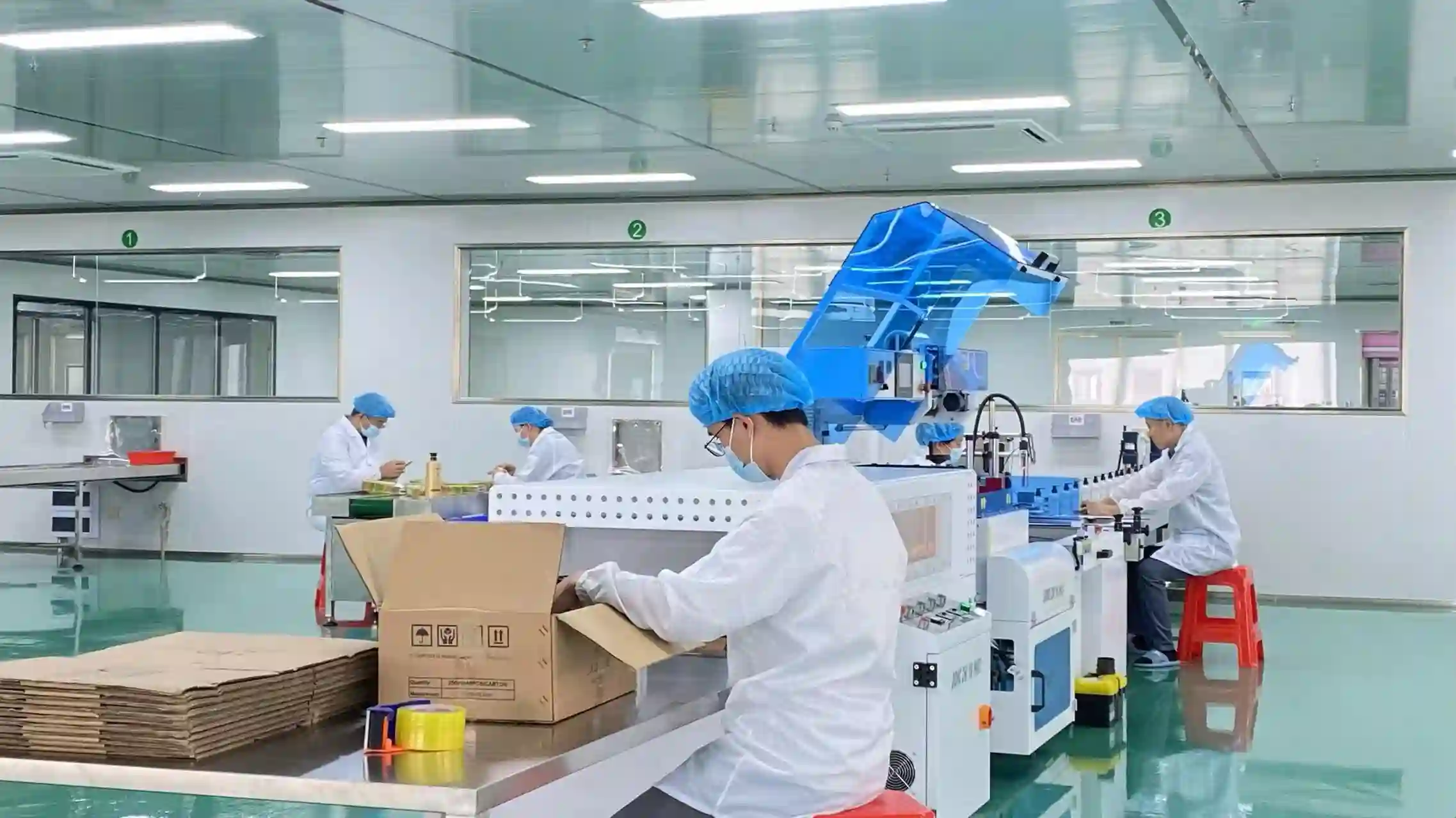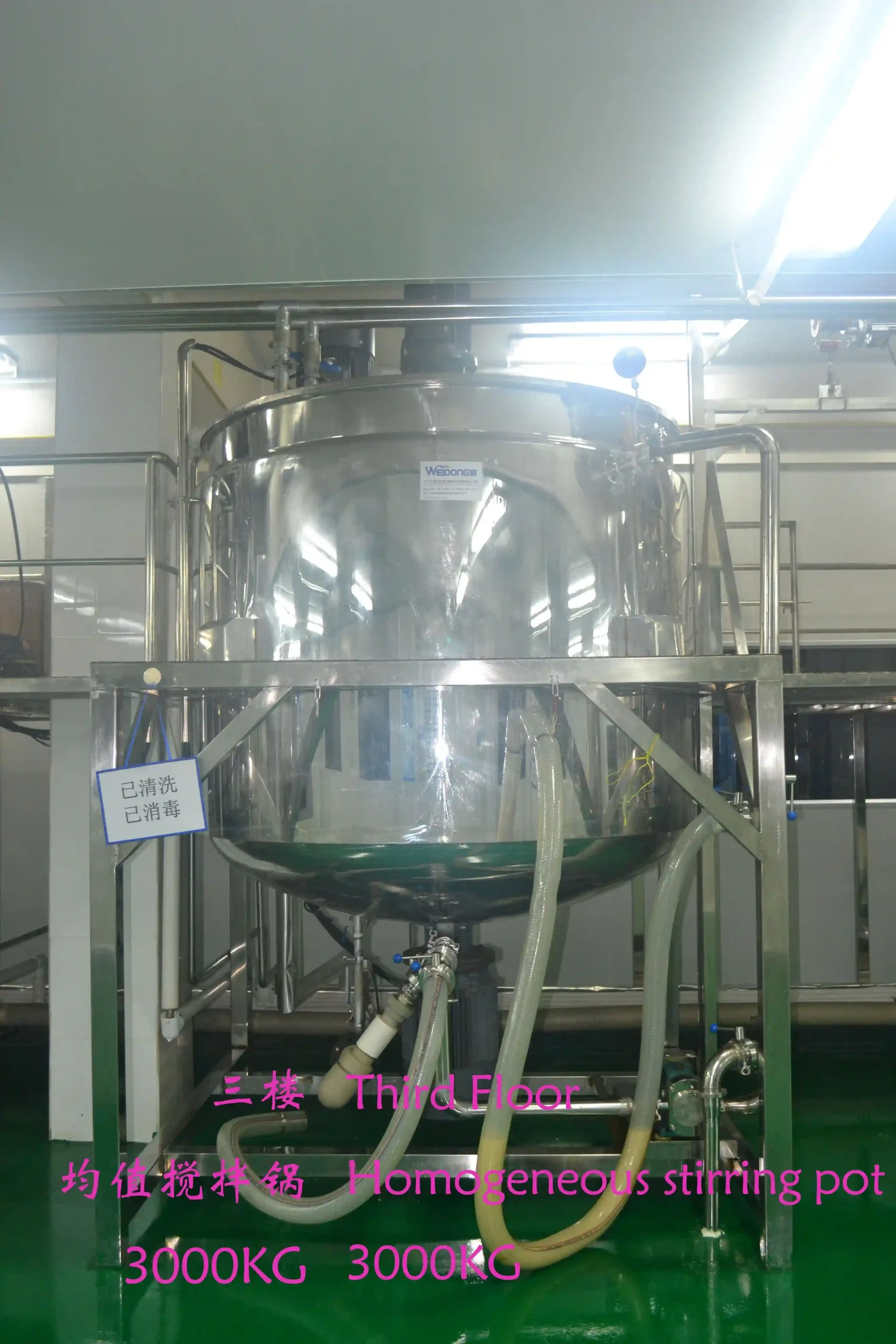 Our production facility is organized across multiple floors to support efficient hair care manufacturing. The second floor houses filling and packaging areas. Large-scale homogenizing tanks and steam systems are located on the third floor, while smaller homogenizing units and manual filling lines support pilot and small-batch production on the fourth floor. The fifth floor is dedicated to coding, shrink wrapping, carton sealing, and liquid filling operations.