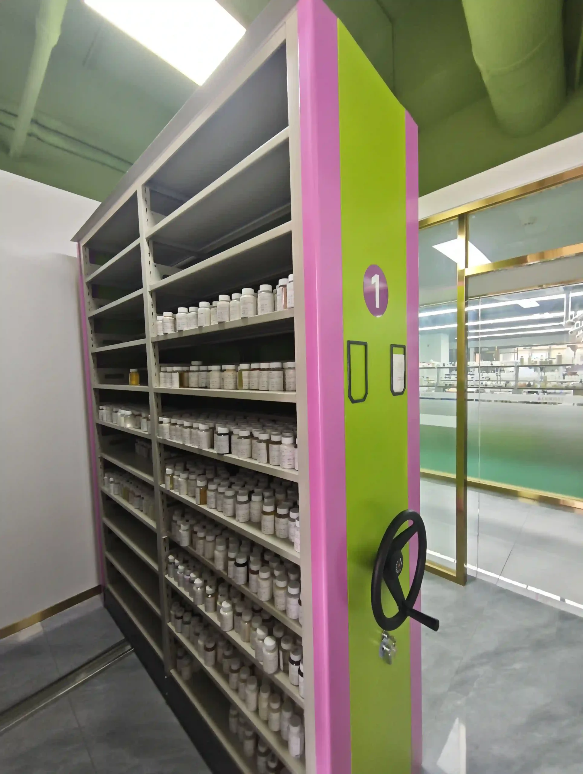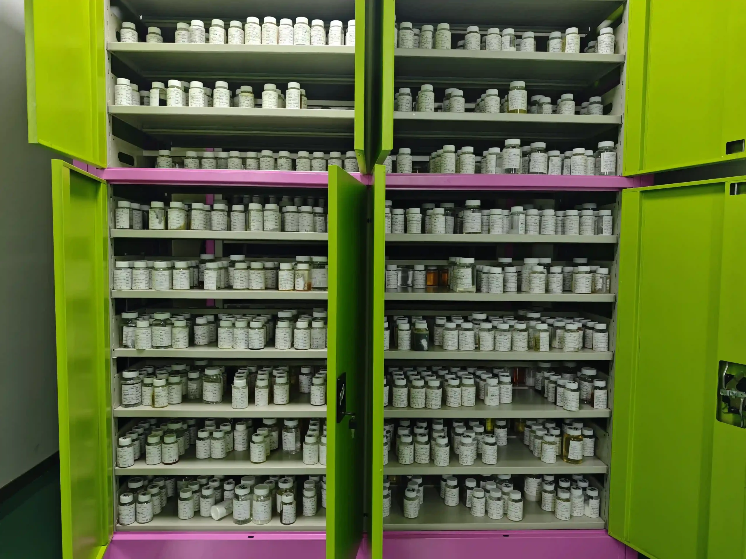 Dedicated storage for finished products, semi-finished goods, and raw material samples, ensuring traceability, quality verification, and batch reference throughout the production process.